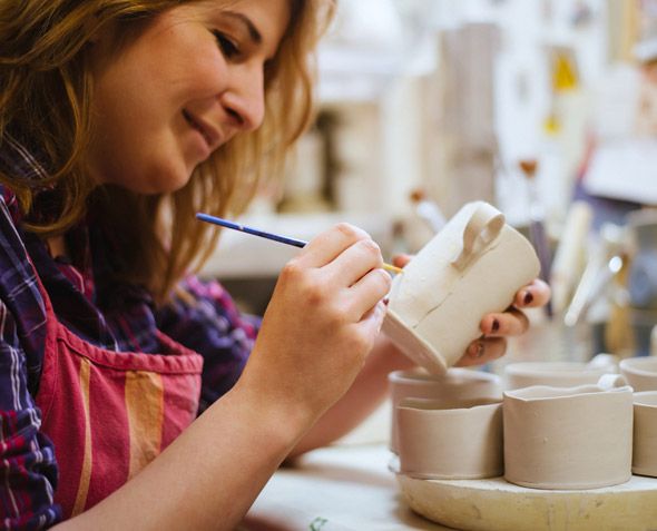 Acquisition des techniques de base (colombin, modelage, pinçage, plaques) et sensibilisation au décor par l’application d’engobes (colorants) sur des thèmes proposés afin d’explorer les potentiels artistiques et créatifs de chacun.e (terre, engobes et émaux fournis).